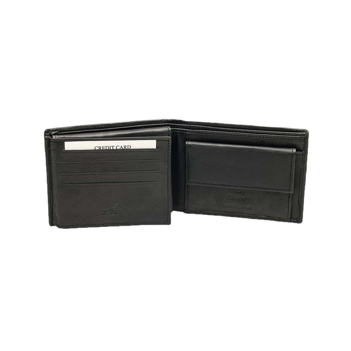 Δερμάτινο πορτοφόλι απο γνήσιο δέρμα σε μαύρο χρώμα με πολλές θήκες για κάρτες ή ταυτότητα και τεχνολογία RFID για προστασία δεδομένων