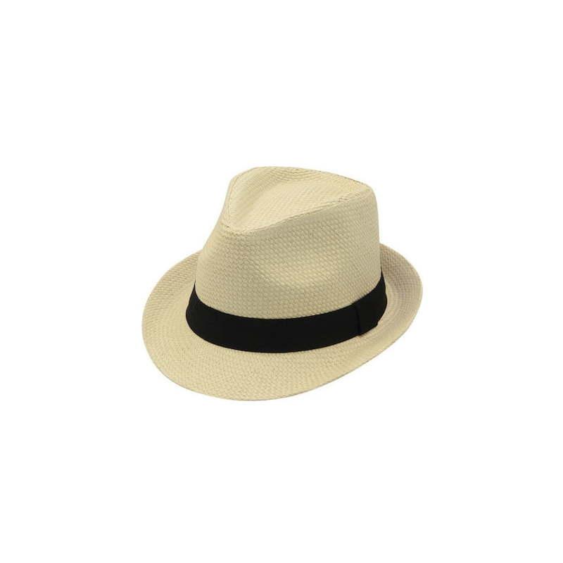 Καβουράκι ανδρικό καπέλο, σε μπεζ χρώμα με μαύρη κορδέλα