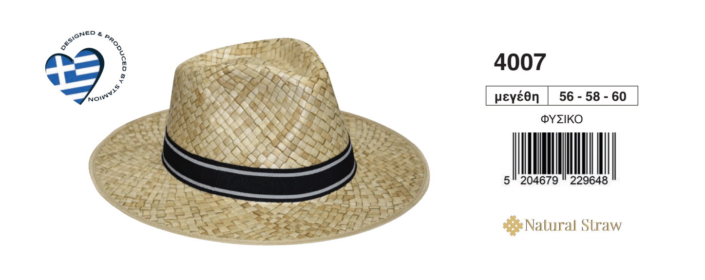 Ανδρικό ψάθινο καπέλο κατασκευασμένο από 100% φυσική ψάθα! Κρατά δροσερό το κεφάλι χάρη στην καλή του ποιότητα.