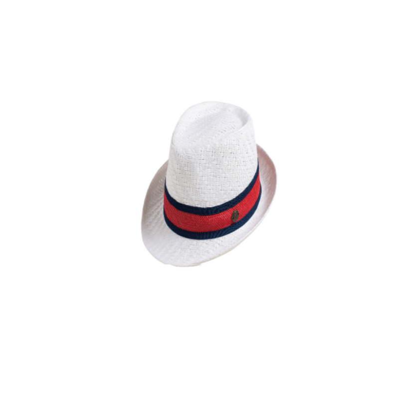 Καπέλο καβουράκι γυναικείο τύπου ψάθινο Ιταλίας, σε χρώμα άσπρο με κόκκινο-μπλε κορδελα, ανθεκτικό και στο νερό