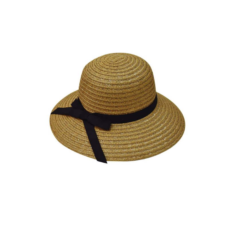 Ψάθινο γυναικείο καπέλο, σε καφέ χρώμα και με σκούρο μπλε λουράκι, κατάλληλο για θάλασσα και για τον περίπατο, πλένεται και καθαρίζεται, ανθεκτικό στο νερό