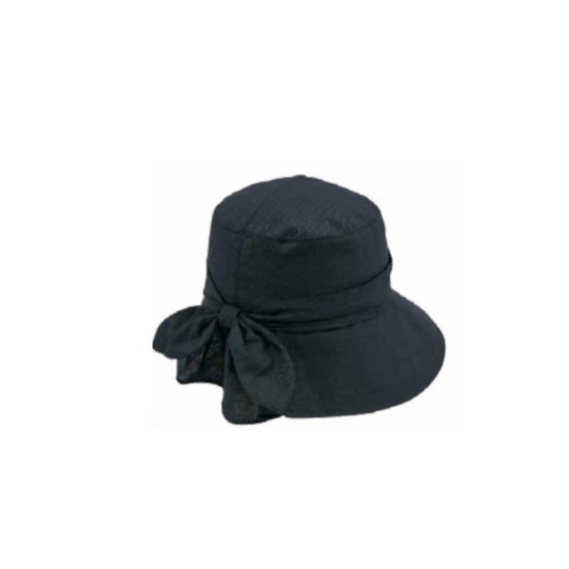Γυναικείο βαμβακερό πάνινο καπέλο, εξαιρετικής ποιότητας, σε χρώμα μαύρο, με φιογκάκι